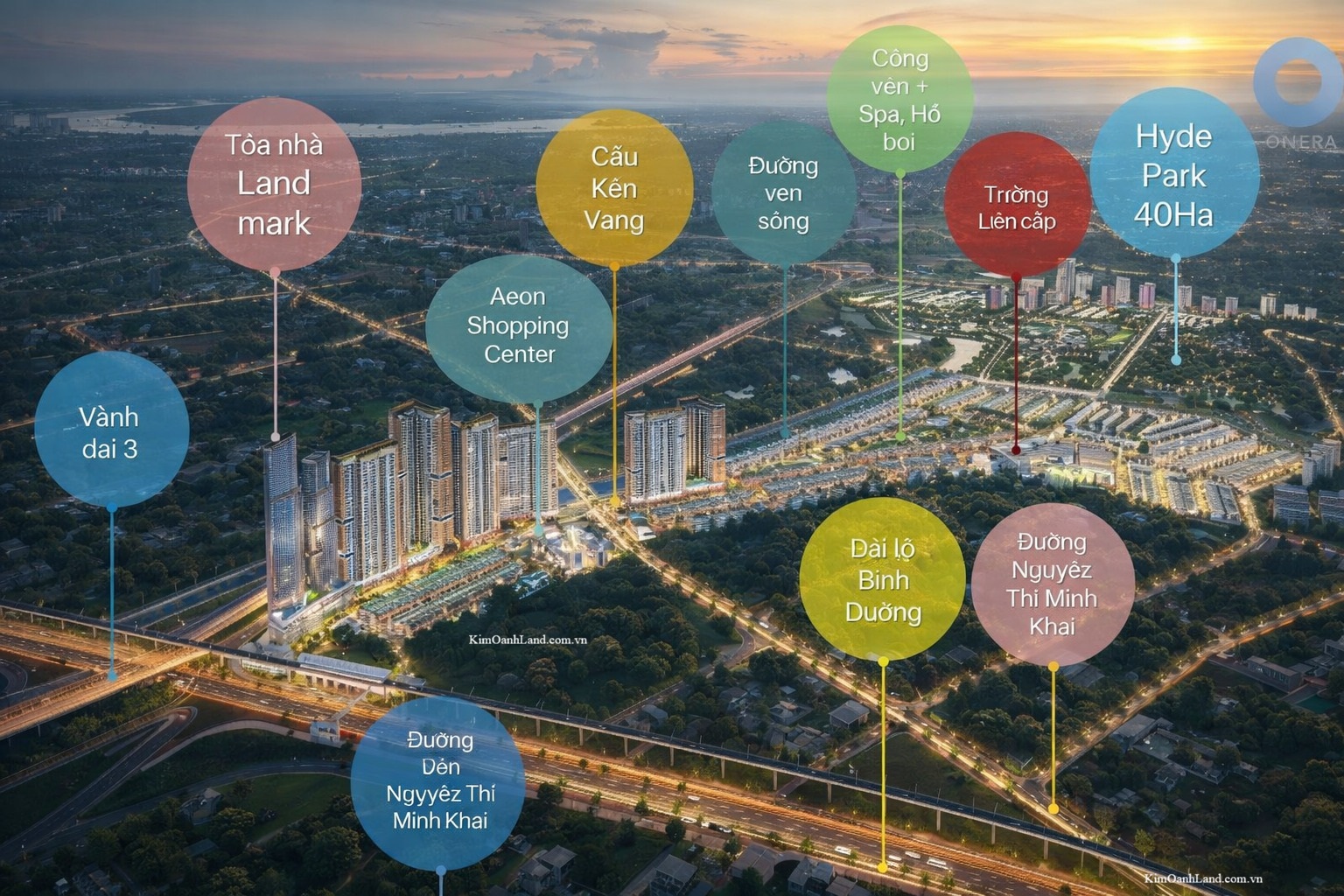 Trong bán kính từ 5 đến 10 km, khu vực xung quanh tập trung nhiều khu công nghiệp lớn như VSIP 1, Sóng Thần và Đồng An. Đây là nơi làm việc của một lượng lớn chuyên gia và kỹ sư, tạo ra nhu cầu nhà ở ổn định trong dài hạn.