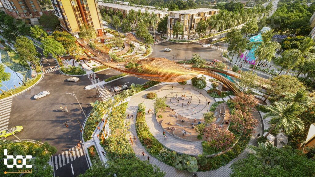 Khoảng cách tiếp cận: Thông số vàng trong quy hoạch của dự án là việc duy trì khoảng cách từ sảnh căn hộ đến các tiện ích cơ bản (công viên, hồ bơi, khu thể thao) chỉ từ 50 đến 150 mét. Đây là khoảng cách quyết định hành vi sử dụng thực tế của cư dân; khi chỉ mất vài phút đi bộ, việc xuống nhà vận động sẽ trở thành thói quen tự nhiên thay vì một kế hoạch cần chuẩn bị.